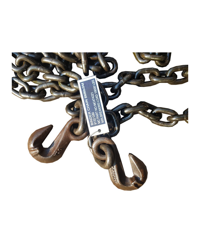 زنجیر 9 متری دوسر قلاب شاخ دار سایز 8 میلی متر برای کاربردهای لیفتینگ و باربرداری مورد استفاده قرار میگیرد.
